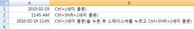 2. 현재 시간 삽입 Ctrl+Shift+;(세미 콜론)