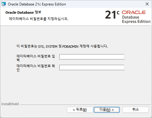 3.6 데이터베이스의 비밀번호를 지정 합니다. 비밀번호를 지정하신후 [다음]버튼을 클릭합니다.