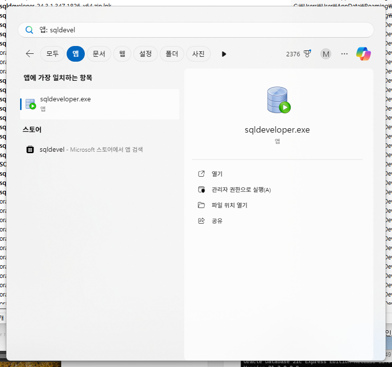 설치되어 있는 SQL Developer를 실행합니다.