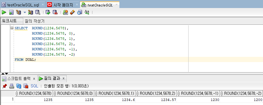 숫자 함수 - 특정 위치에서 반올림 함수(ROUND)