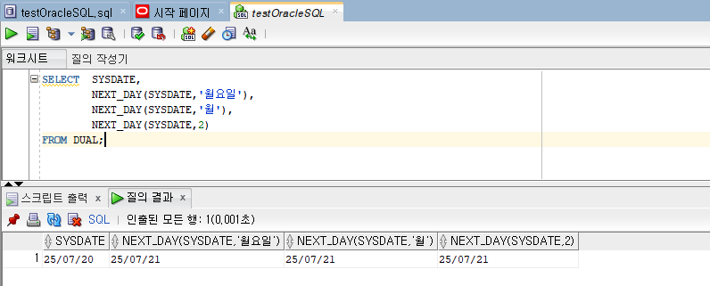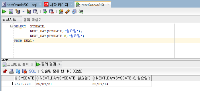 [Oracle] 날짜 함수 - 돌아오는 요일을 구하는 (NEXT_DAY)
