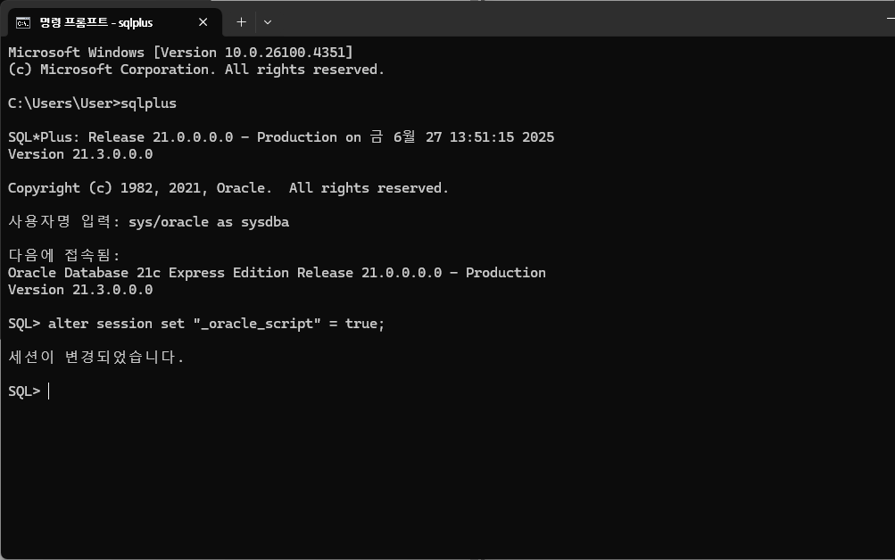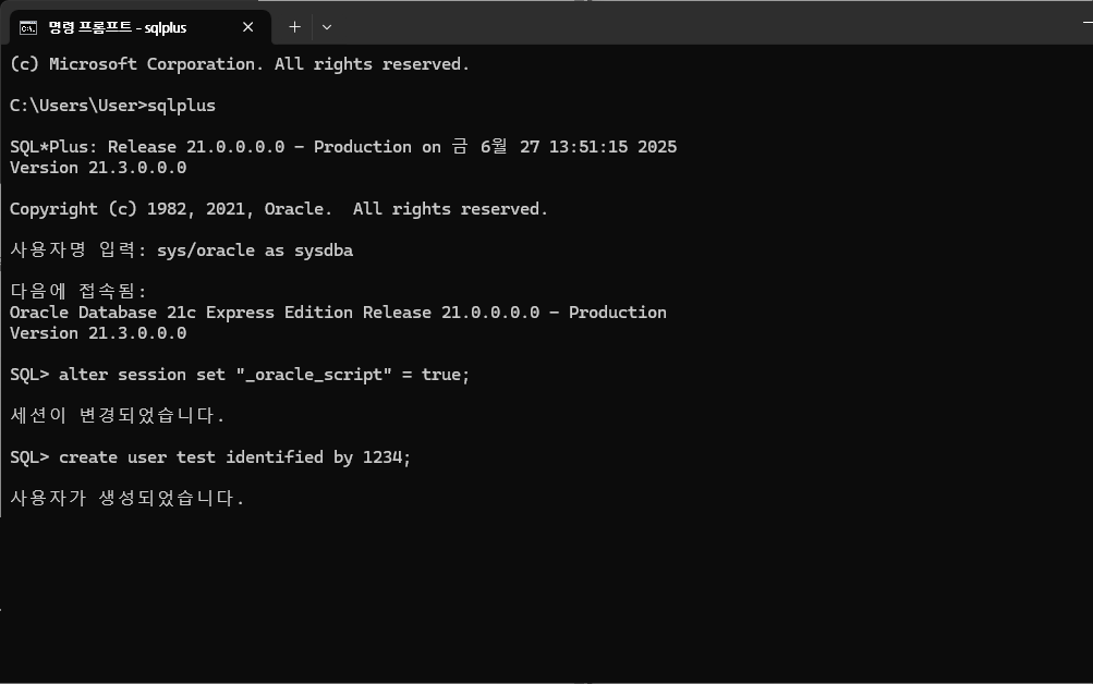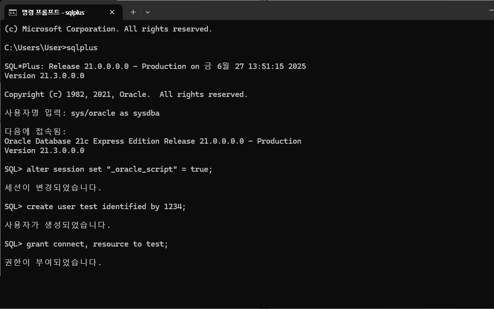 | [Oracle] 사용할 DB user 생성하기 (0) | 2025.06.29 |