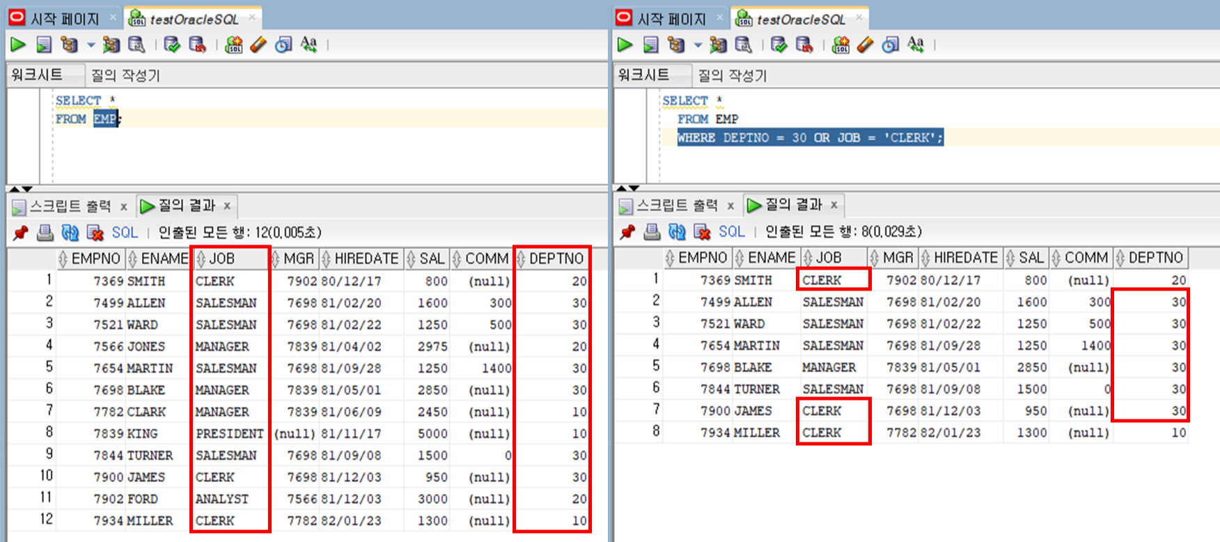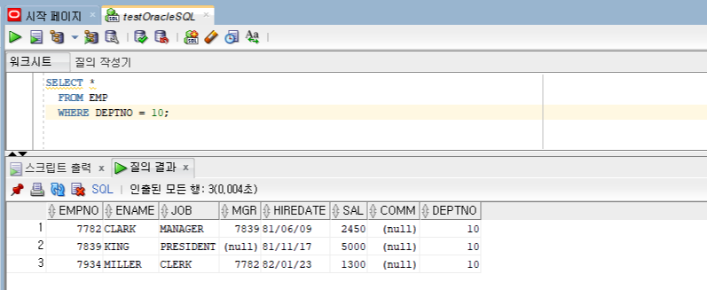 예제로 사용된 TABLE의 정보는 'SCOTT 계정 예제 Table(emp, dept, salgrade)'을 참고하시면 됩니다.